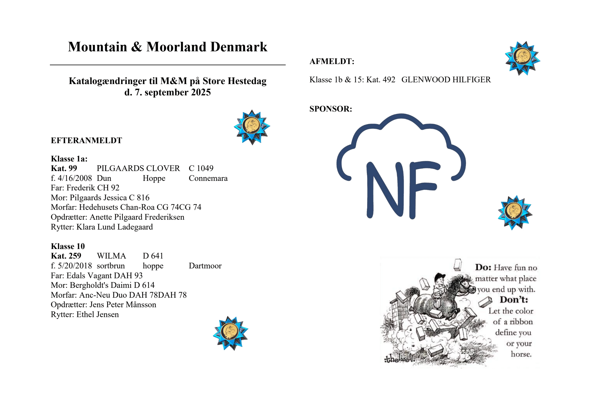 Der vil altid komme lidt ændringer i forhold til kataloget, og da vi alle er optaget med andet på dyrskuepladsen i morgen lørdag, får I søndagens ændringer allerede nu.